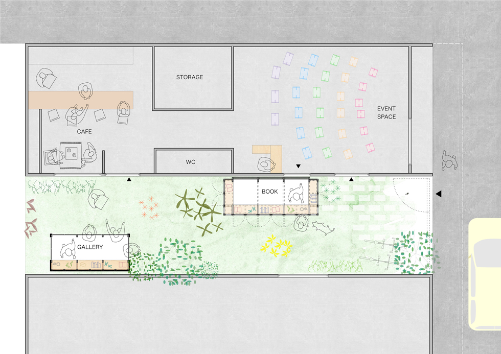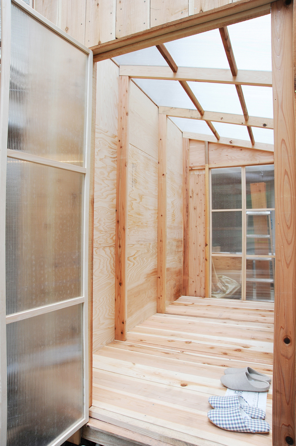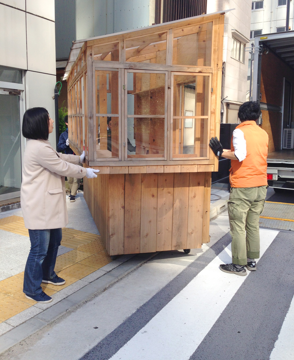 子供から大人まで「作ること」を共有できるイベントで作成した小屋。施工精度が低くても、空間の質を失わないような「大らかな納まり」を考えた。また隣のビルの一部のような片流れ屋根の形状にすることで、「路地」に似た場所を作り出し、敷地の狭さが楽しさに感じられるような計画にした。