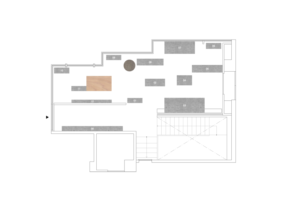 展示棚を展示場全体に配置させることにより、全体をコントロールできる様な計画にした。余白の大小により動線や溜まりを作り出し、より自由でより自然な動線が生まれる様な動線計画を考えた。外部に向かって図書館の様な表情を持たせることで、街に対しても参加できる視線を作り出せるよう考慮した。
